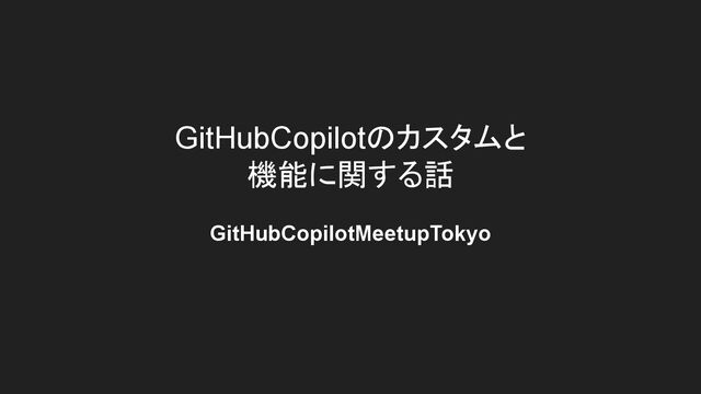 GitHubCopilotのカスタムと 機能に関する話 GitHubCopilotMeetupTokyo
