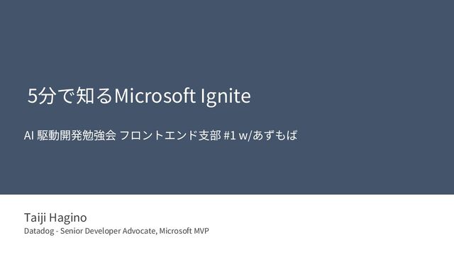 5分で知るMicrosoft Ignite AI 駆動開発勉強会 フロントエンド支部 #1 w/あずもば Taiji Hagino Datadog