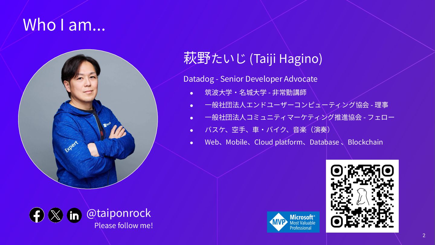 2 Who I am... 萩野たいじ (Taiji Hagino) Datadog - Senior