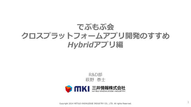 でぶもぶ会 クロスプラットフォームアプリ開発のすすめ Hybridアプリ編 1 Copyright 2014 MITSUI KNOWLEDGE INDUSTRY CO.,