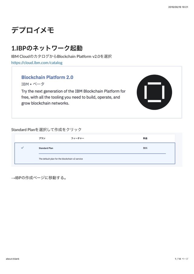 2019/06/19 10(21 1 / 14 ϖʔδ about:blank 1.IBPͷωοτϫʔΫىಈ IBM CloudͷΧλϩά͔ΒBlockchain
