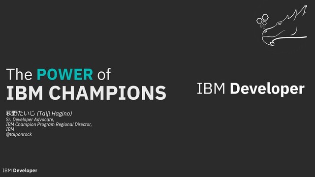 The POWER of IBM CHAMPIONS 萩野たいじ (Taiji Hagino) Sr. Developer