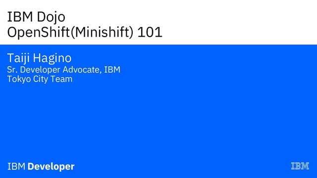 IBM Dojo OpenShift(Minishift) 101 Taiji Hagino Sr. Developer Advocate, IBM