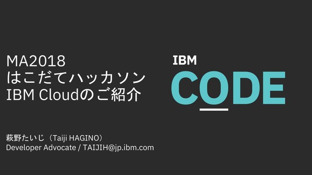 MA2018 IBM Cloud Taiji HAGINO Developer Advocate /