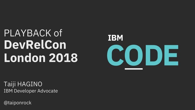 PLAYBACK of DevRelCon London 2018 Taiji HAGINO IBM Developer Advocate