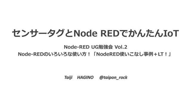 センサータグとNode REDでかんたんIoT Node-RED UG勉強会 Vol.2 Node-REDのいろいろな使い⽅!「NodeRED使いこなし事例+LT!」