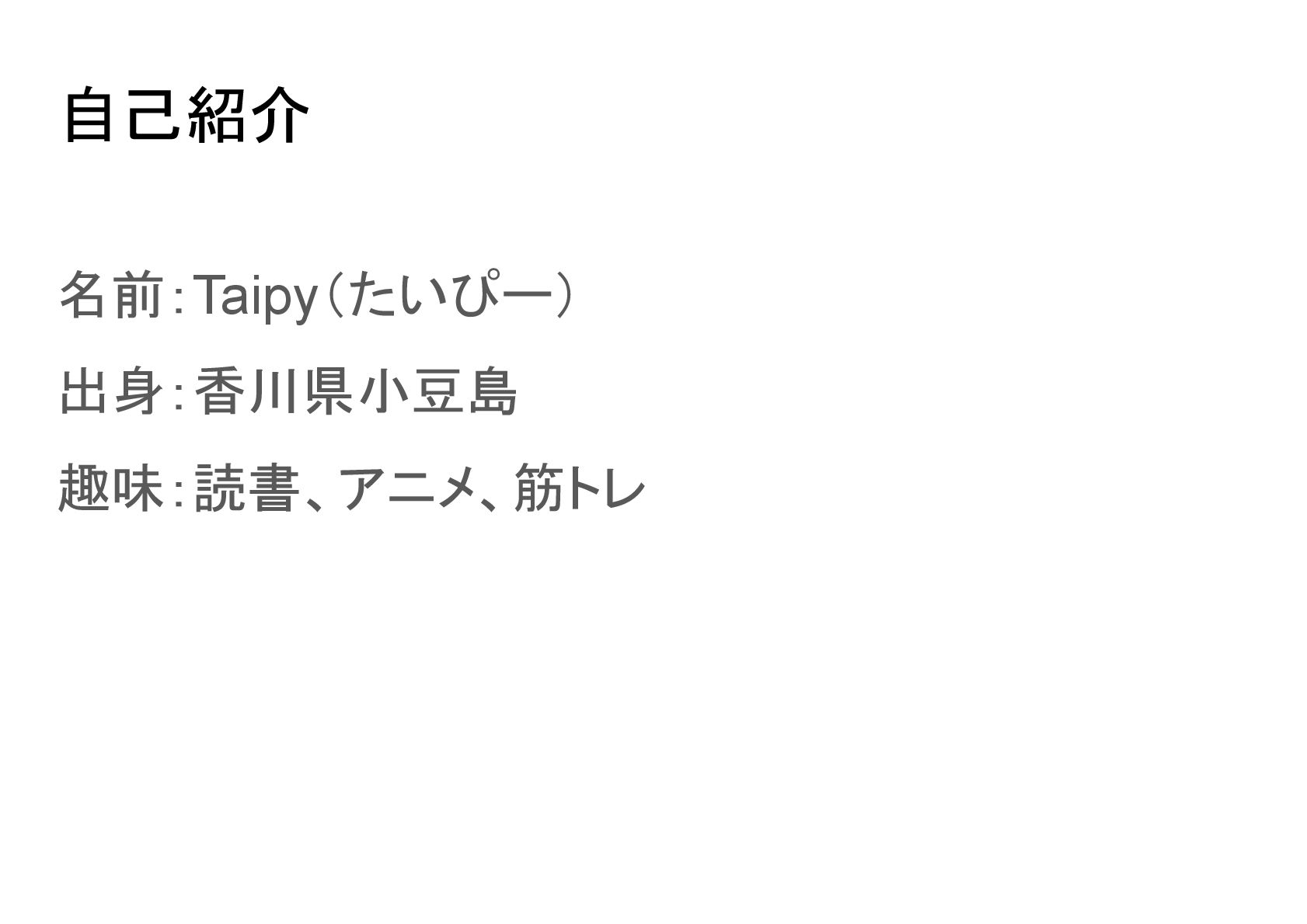 自己紹介 名前:Taipy(たいぴー) 出身:香川県小豆島 趣味:読書、アニメ、筋トレ