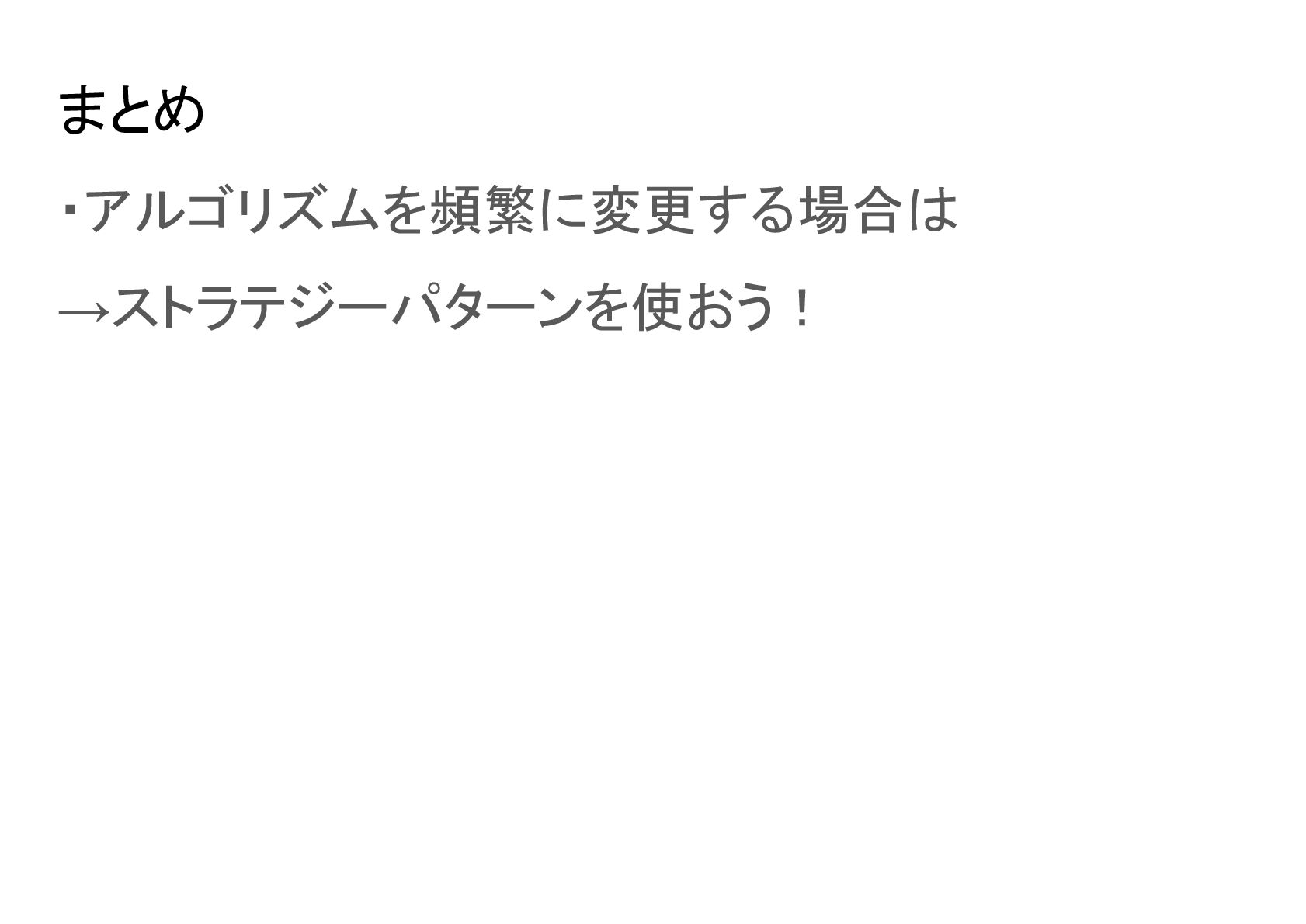 まとめ ・アルゴリズムを頻繁に変更する場合は →ストラテジーパターンを使おう!