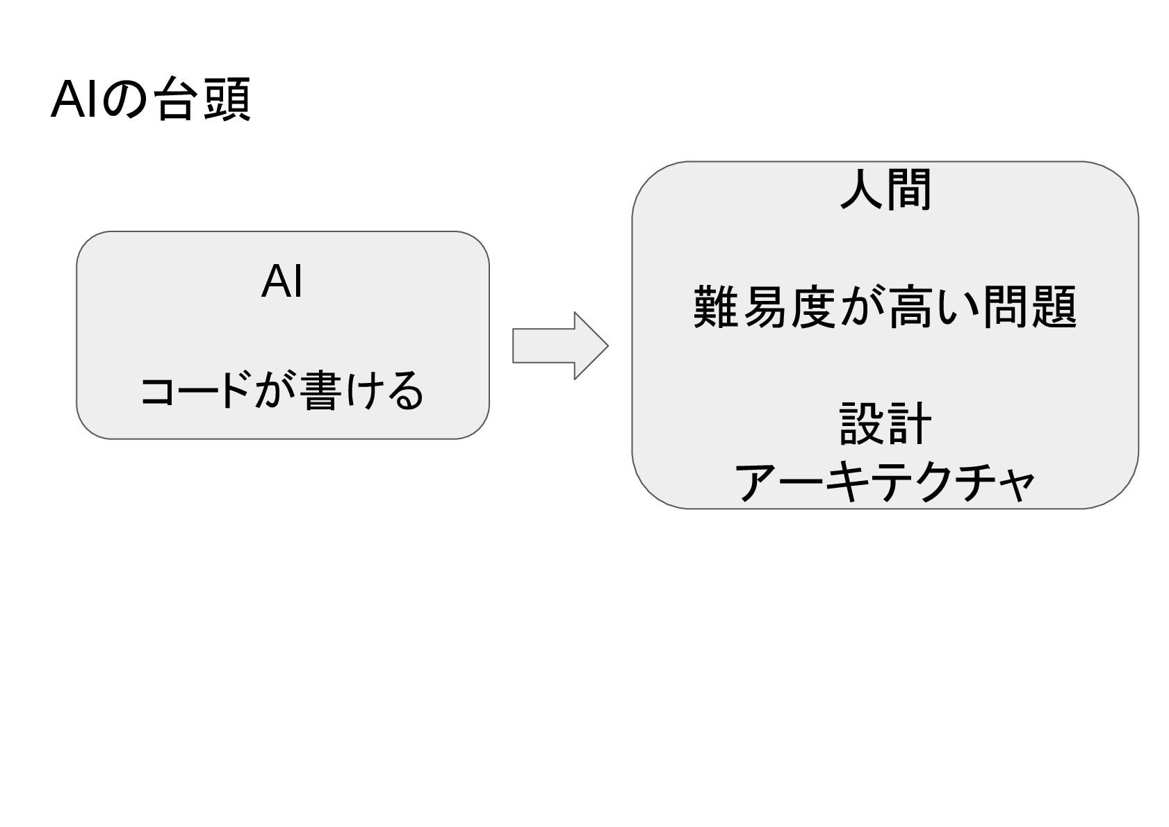 AIの台頭 AI コードが書ける 人間 難易度が高い問題 設計 アーキテクチャ