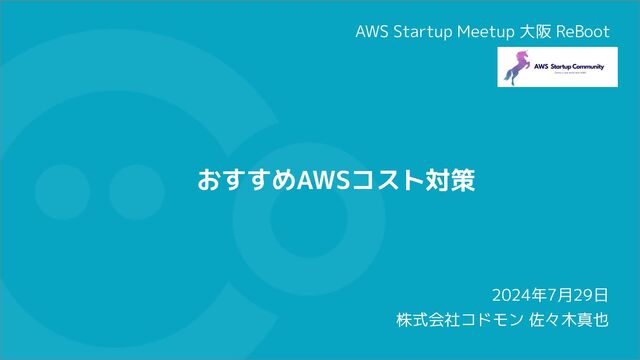 2024年7月29日 株式会社コドモン 佐々木真也 おすすめAWSコスト対策 AWS Startup Meetup 大阪 ReBoot