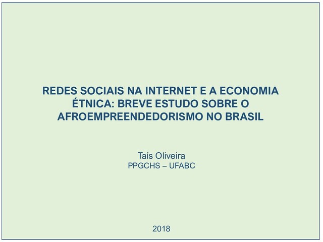 parda (Pnad, 2016). 61% da população brasileira com 10 anos ou mais usam internet; 86% acessam a internet todos os dias ou quase todos os dias; 78% para o uso de redes sociais (TIC Domicílios, 2017). Há 12,8 milhões de Afroempreendedores no Brasil (Sebrae, 2013).