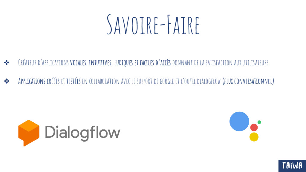 donnant de la satisfaction aux utilisateurs ❖ Applications créées et testées en collaboration avec le support de google et l’outil dialogflow (flux conversationnel)