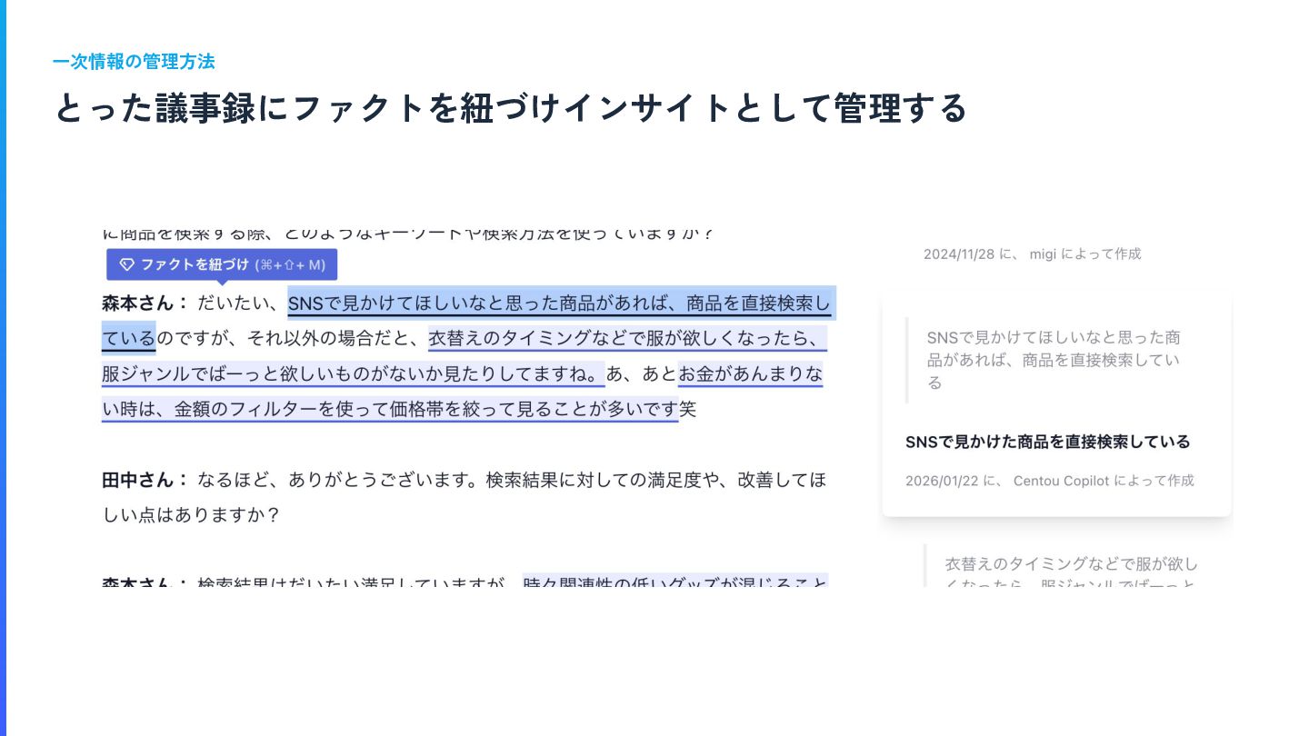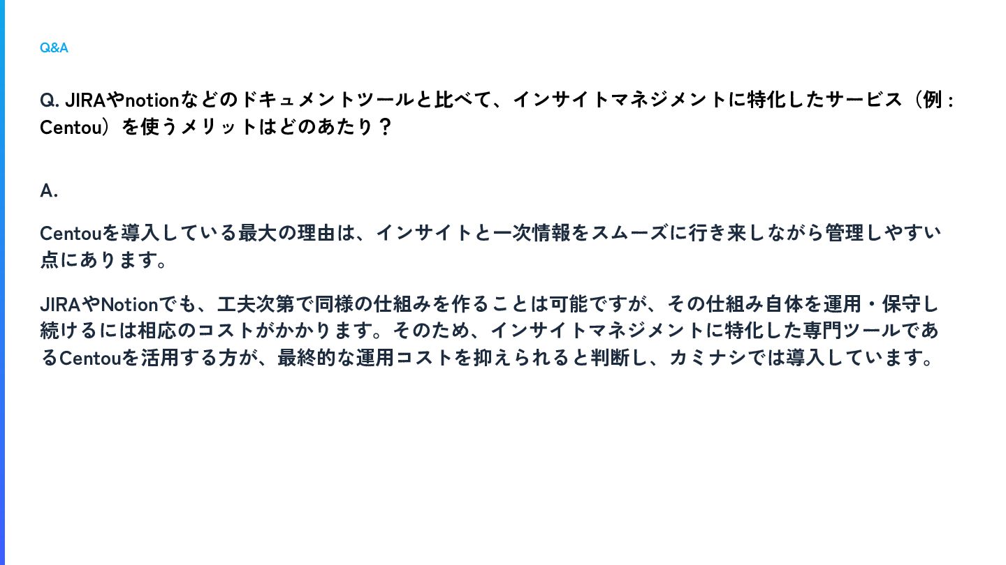 Centou主催の 急成長企業カミナシに聞く「なぜインサイトを貯めるのか?」 にて発表した登壇資料です。 #インサイトマネジメント