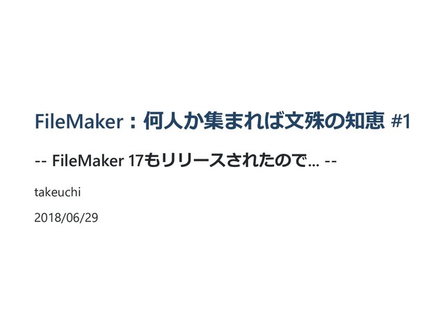 FileMaker:何人か集まれば文殊の知恵 #1 ‐‐ FileMaker 17もリリースされたので... ‐‐ takeuchi 2018/06/29