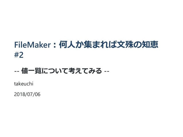 FileMaker:何人か集まれば文殊の知恵 #2 ‐‐ 値一覧について考えてみる ‐‐ takeuchi 2018/07/06