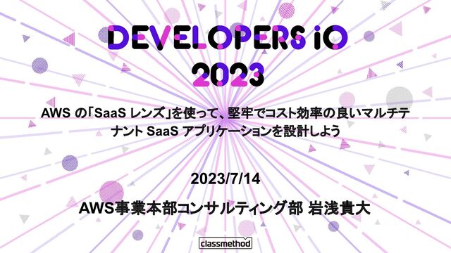 AWS の「SaaS レンズ」を使って、堅牢でコスト効率の良いマルチテ ナント SaaS アプリケーションを設計しよう 2023/7/14 AWS事業本部コンサルティング部 岩浅貴大