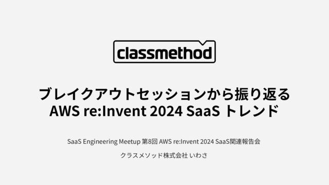 SaaS Engineering Meetup 第8回 AWS re:Invent 2024 SaaS関連報告会 クラスメソッド株式会社 いわさ