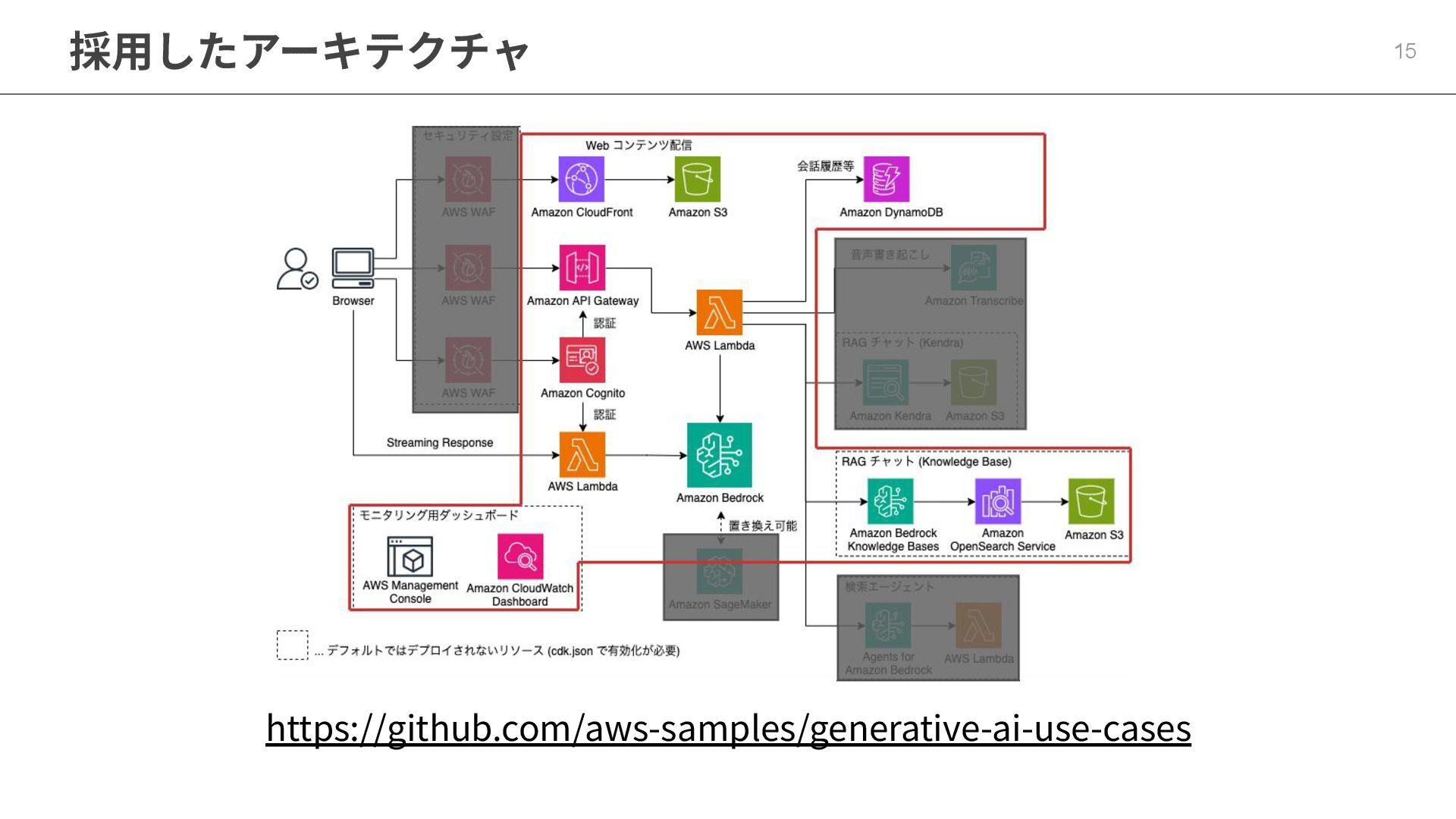 採⽤したアーキテクチャ 15 https://github.com/aws-samples/generative-ai-use-cases