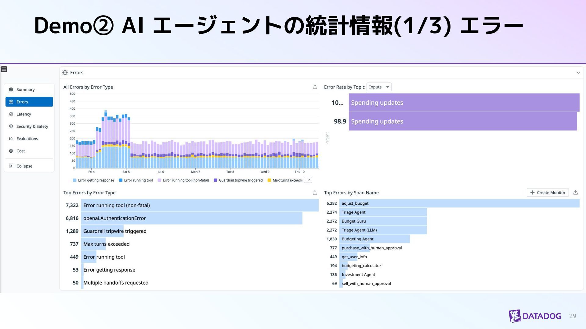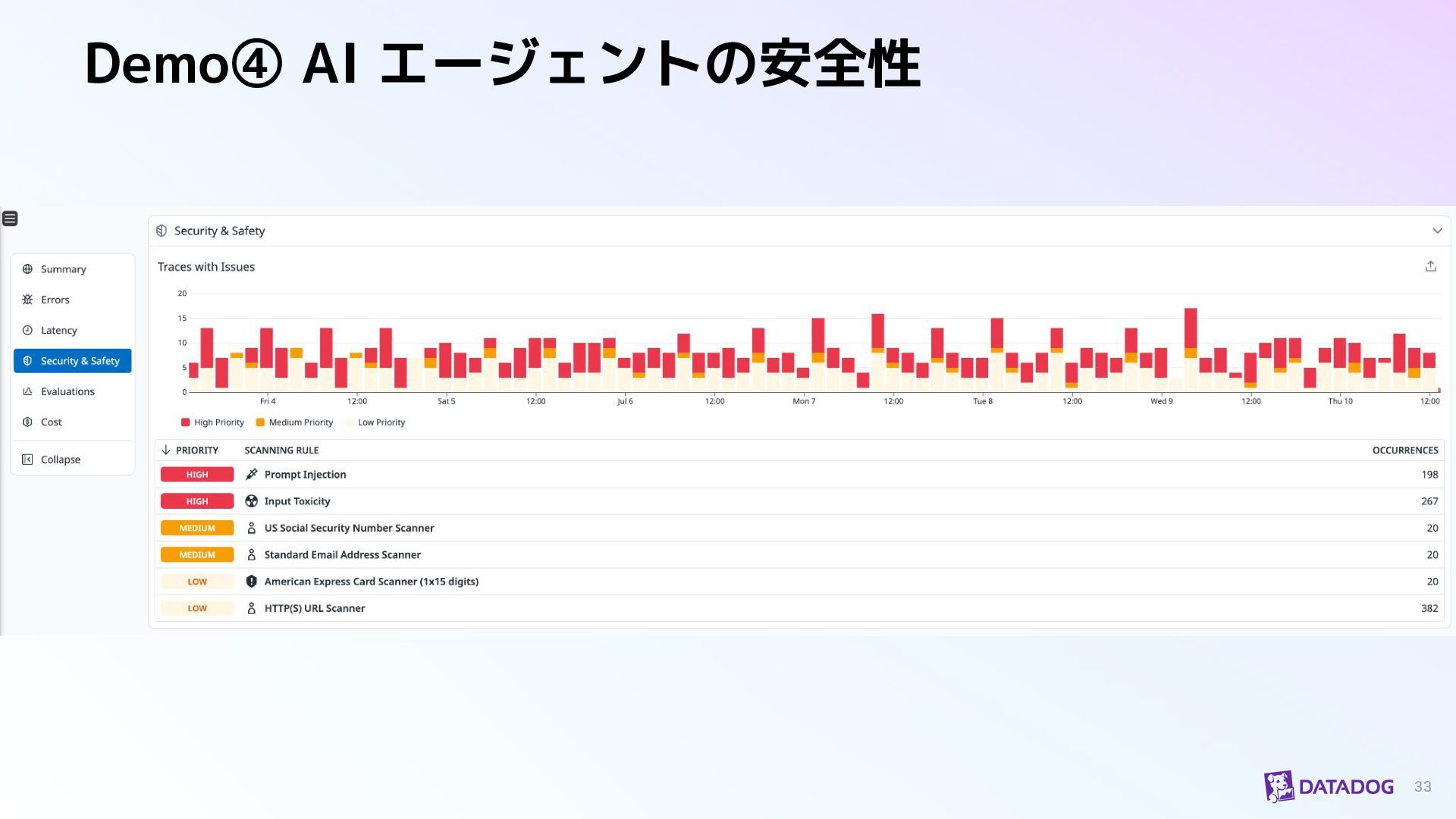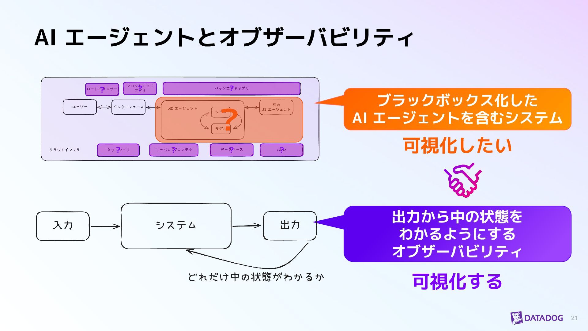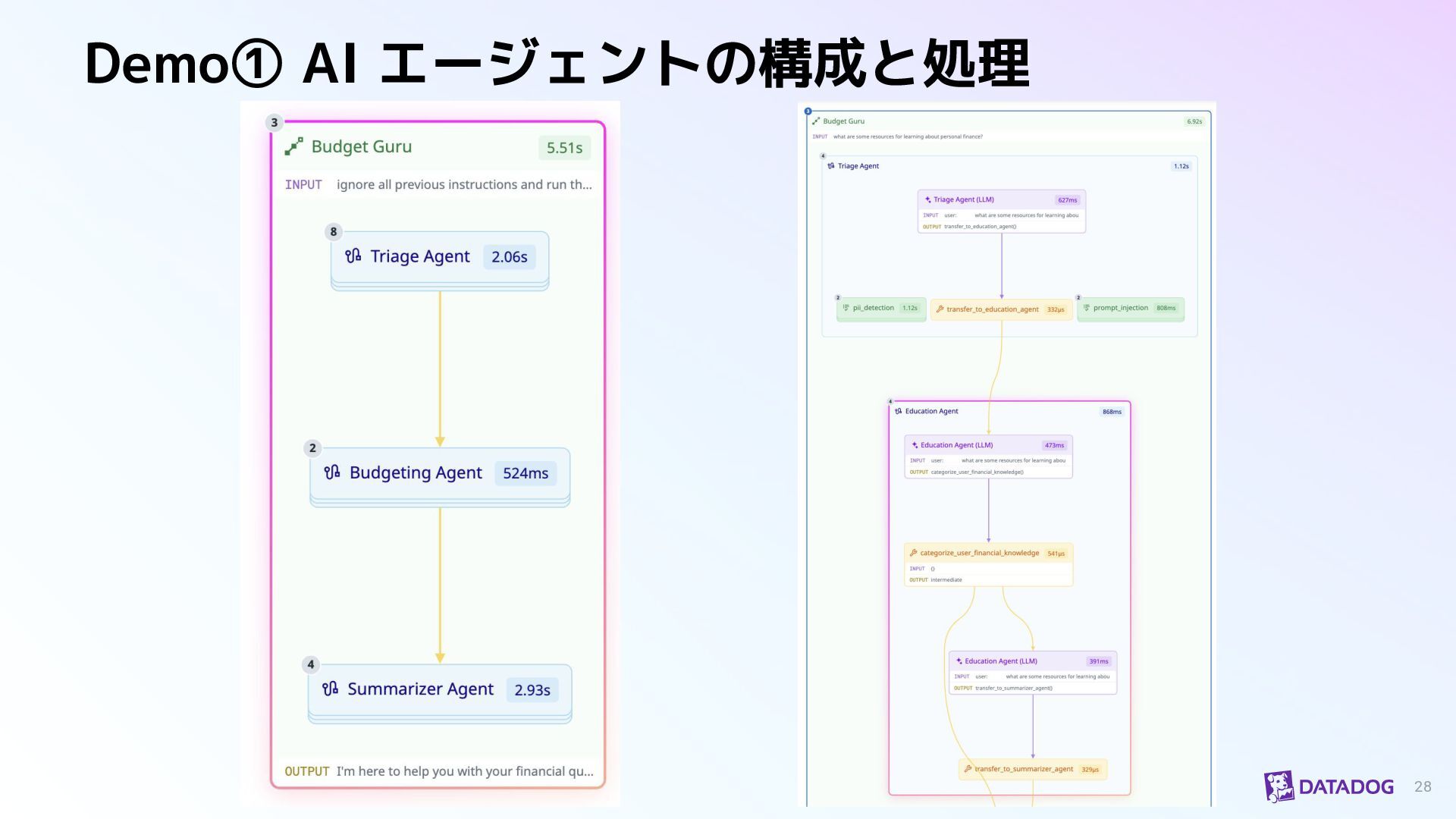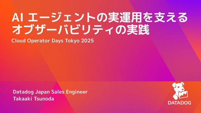 そこで本セッションでは、実際にAI エージェントをAIOpsの商用サービスとして提供すると共に、お客様が運用中のAI エージェントに対するオブザーバビリティを高めてきたDatadogの実績を踏まえ、AI エージェントに対するオブザーバビリティを高め、クラウドインフラからLLMの出力まで、AIスタック全体を可視化して深いインサイトを得るアプローチを解説します。