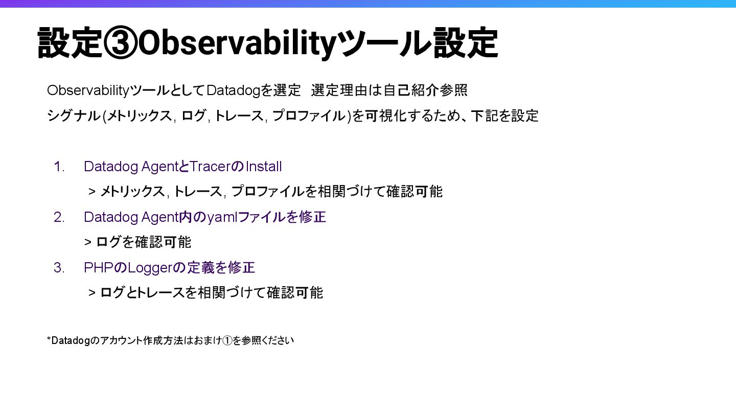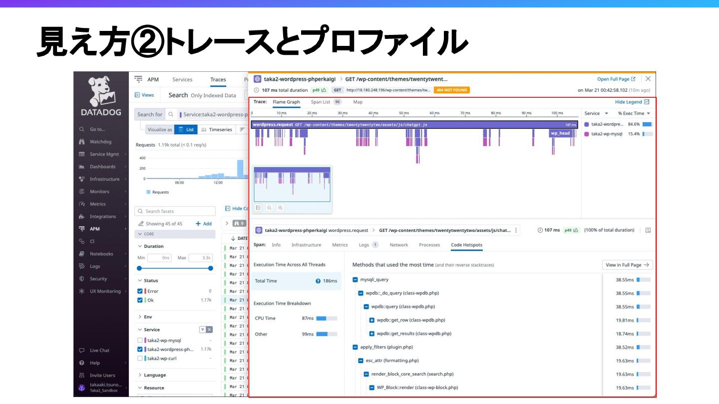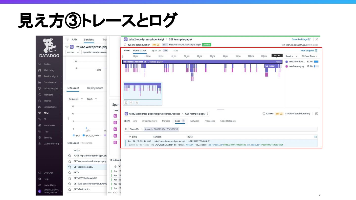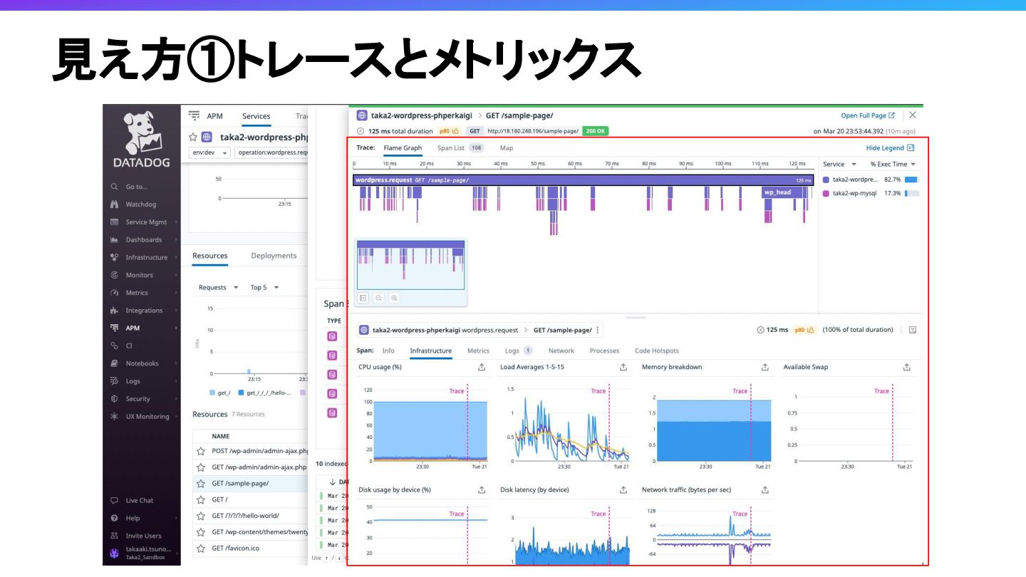 Obserbavilityの3本柱と言われるAPM, Log, MetricsがObservabilityツールの一つであるDatadogでどのように見えるかみてみたいと思います。