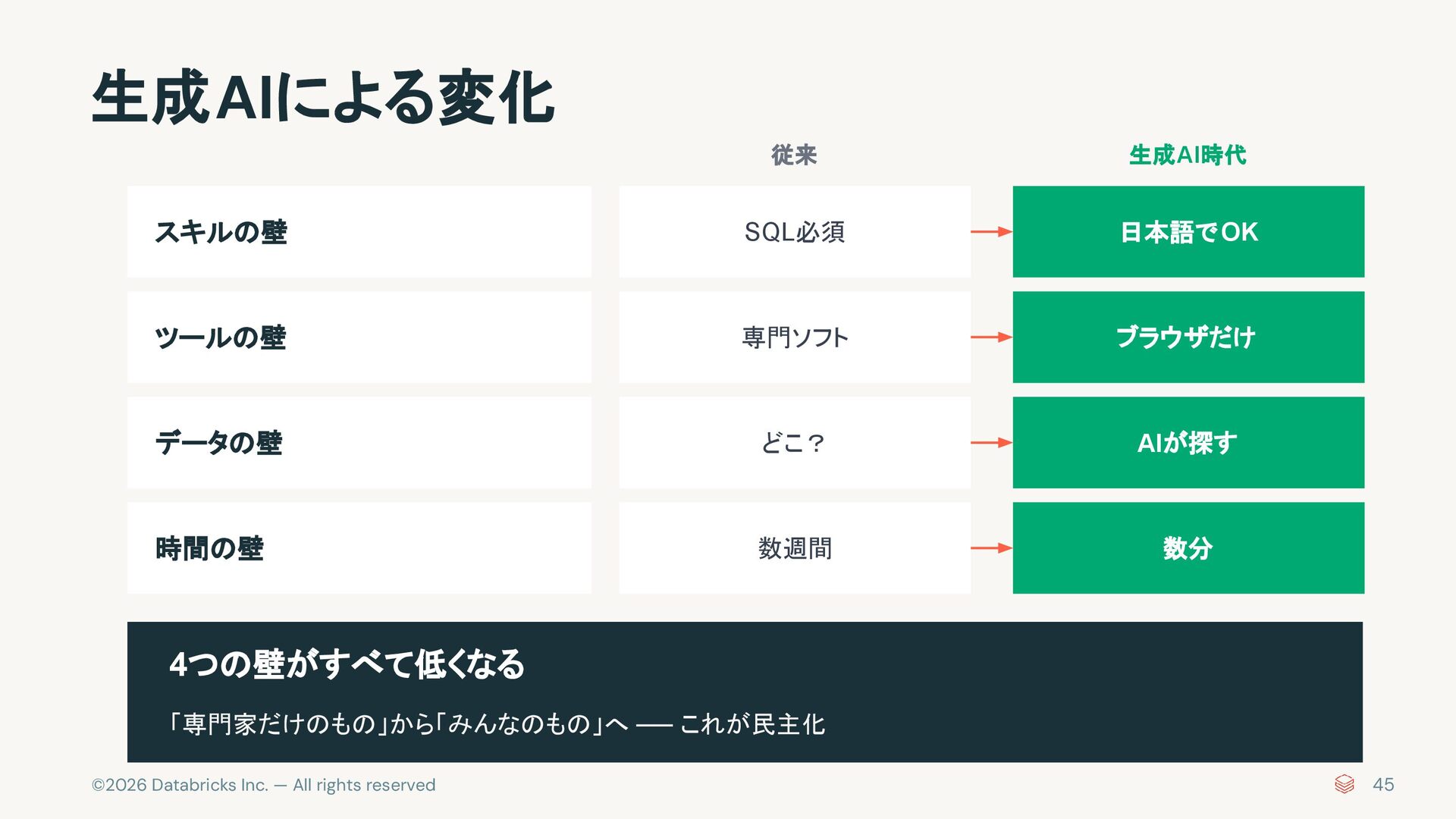 ©2026 Databricks Inc. — All rights reserved 生成AIによる変化 45 従来