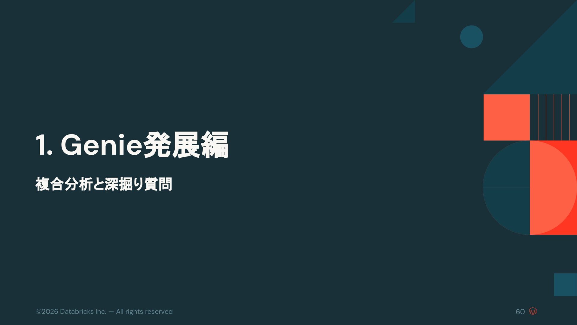 ©2026 Databricks Inc. — All rights reserved 1. Genie発展編 複合分析と深掘り質問