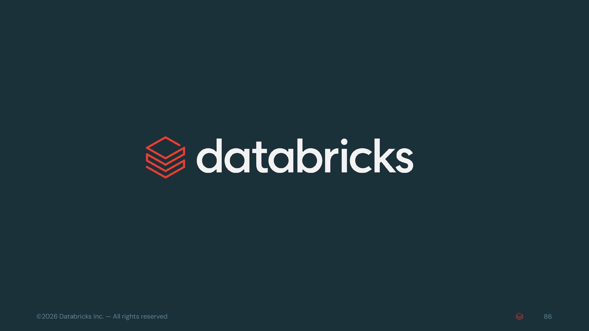 ©2026 Databricks Inc. — All rights reserved 84 質問タイム 今日の内容について、何でも聞いてください