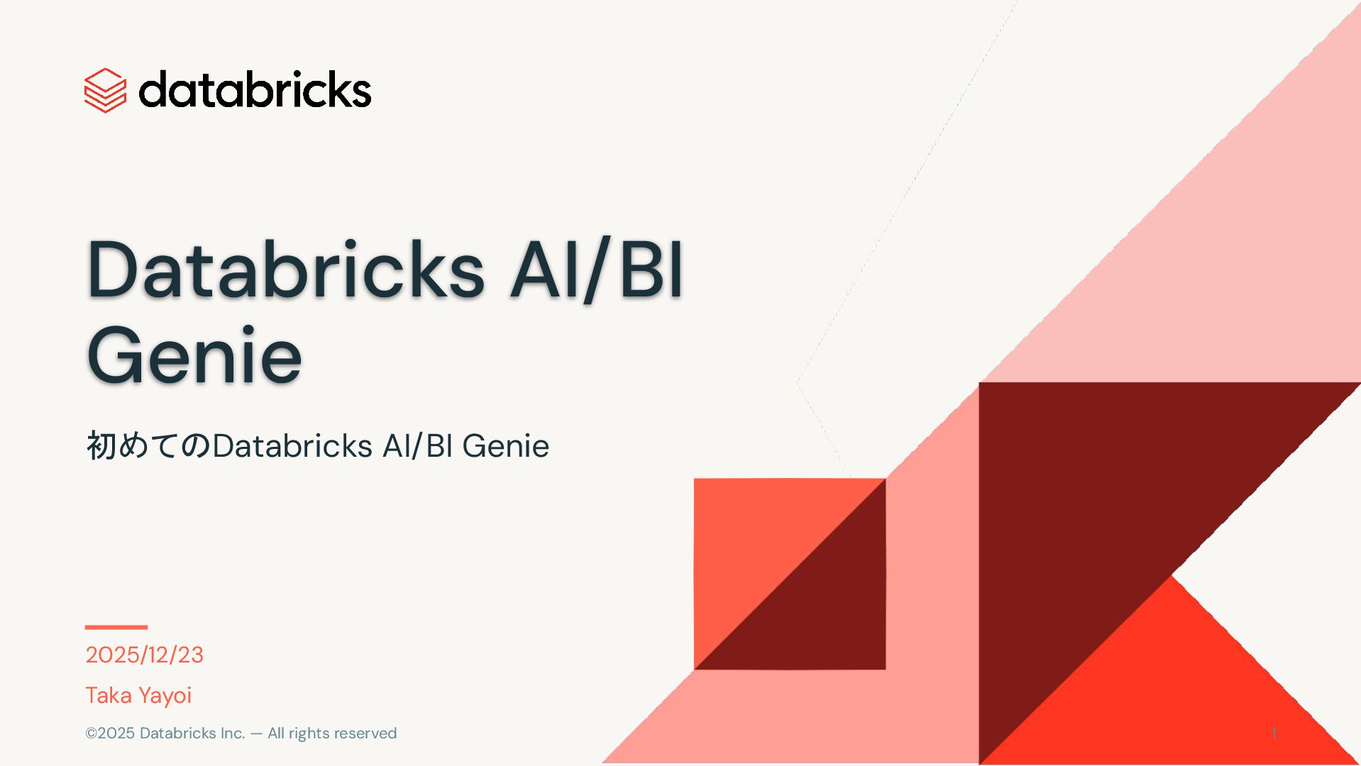 1 初めてのDatabricks AI/BI Genie 2025/12/23 Taka Yayoi