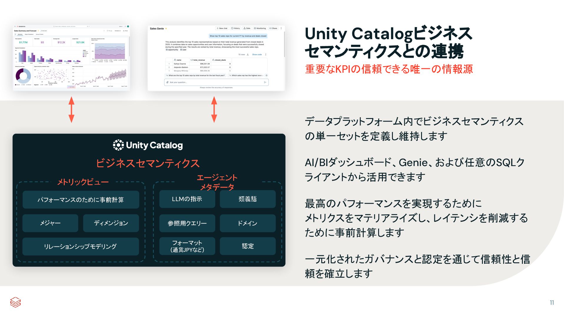Introducing Databricks AI/BI すべての人のためのインテリジェントアナリティクス 10 Unity Catalogによる管理 | Databricks SQLを活用