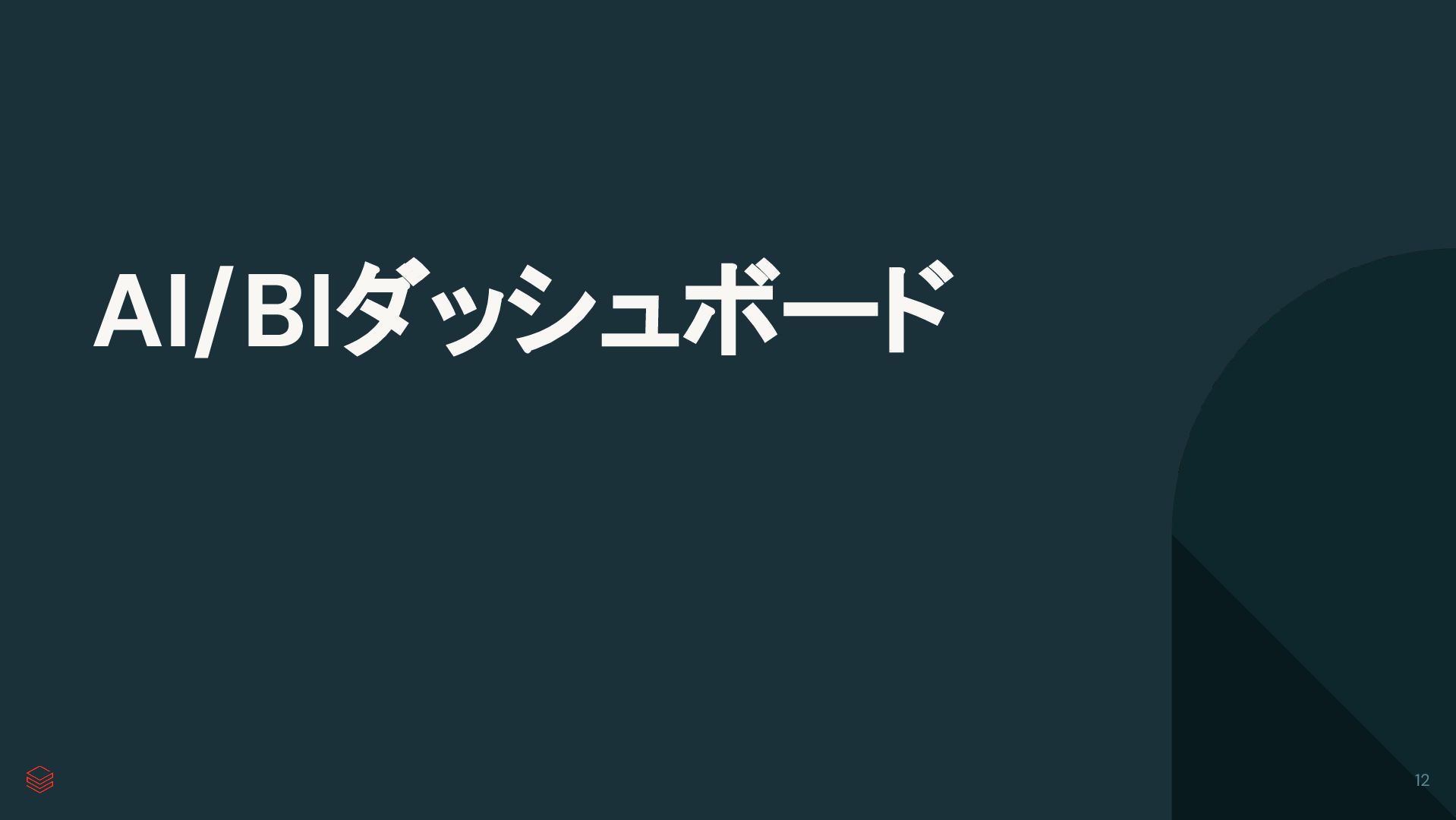 ドメイン 認定 エージェント メタデータ メトリックビュー データプラットフォーム内でビジネスセマンティクス の単一セットを定義し維持します AI/BIダッシュボード、Genie、および任意のSQLク ライアントから活用できます 最高のパフォーマンスを実現するために メトリクスをマテリアライズし、レイテンシを削減する ために事前計算します 一元化されたガバナンスと認定を通じて信頼性と信 頼を確立します Unity Catalogビジネス セマンティクスとの連携 重要なKPIの信頼できる唯一の情報源 11