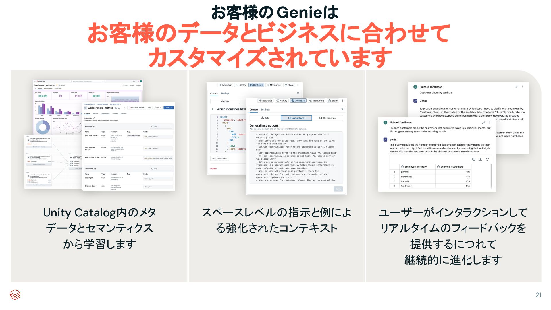 お客様のGenieは お客様のデータとビジネスに合わせて カスタマイズされています 21