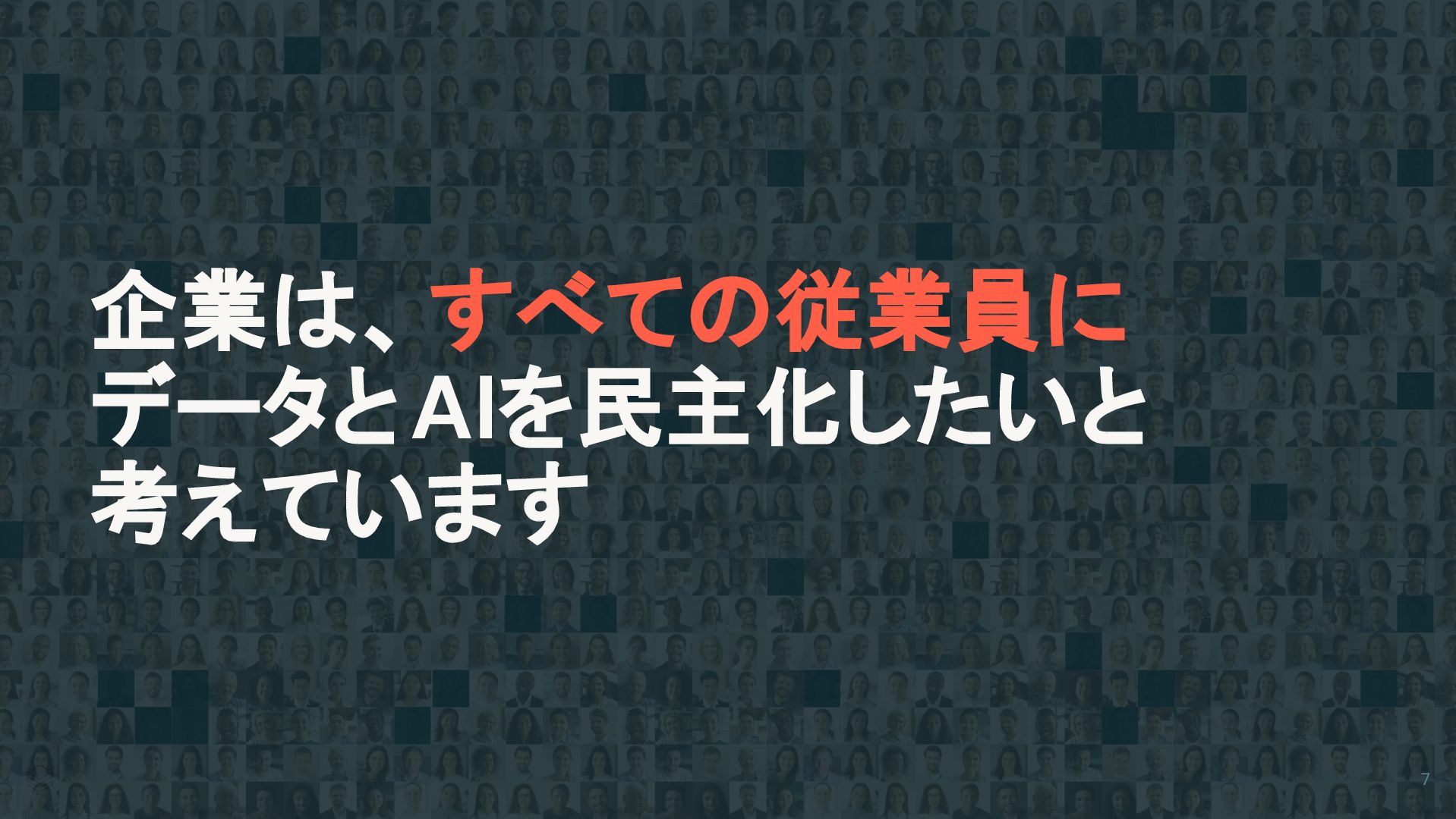 企業は、すべての従業員に データとAIを民主化したいと 考えています 7
