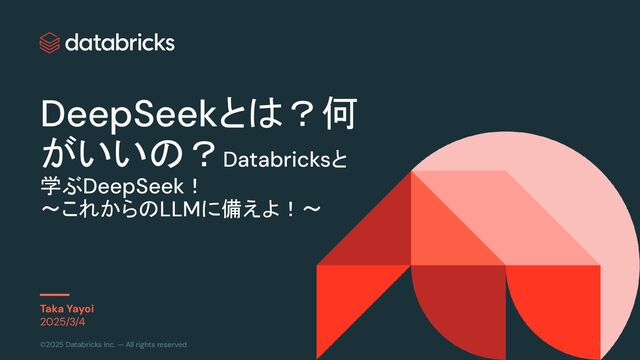 Databricksと学ぶDeepSeek! 〜これからのLLMに備えよ!〜 - connpass https://redbrick.connpass.com/event/345123/