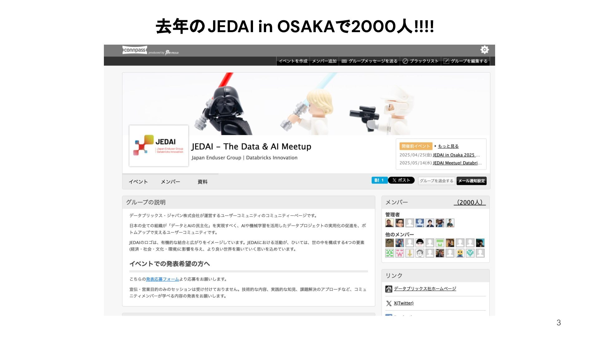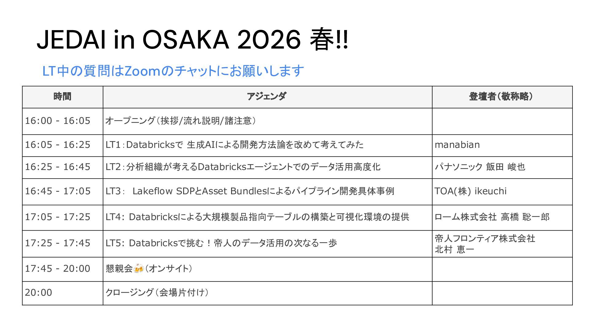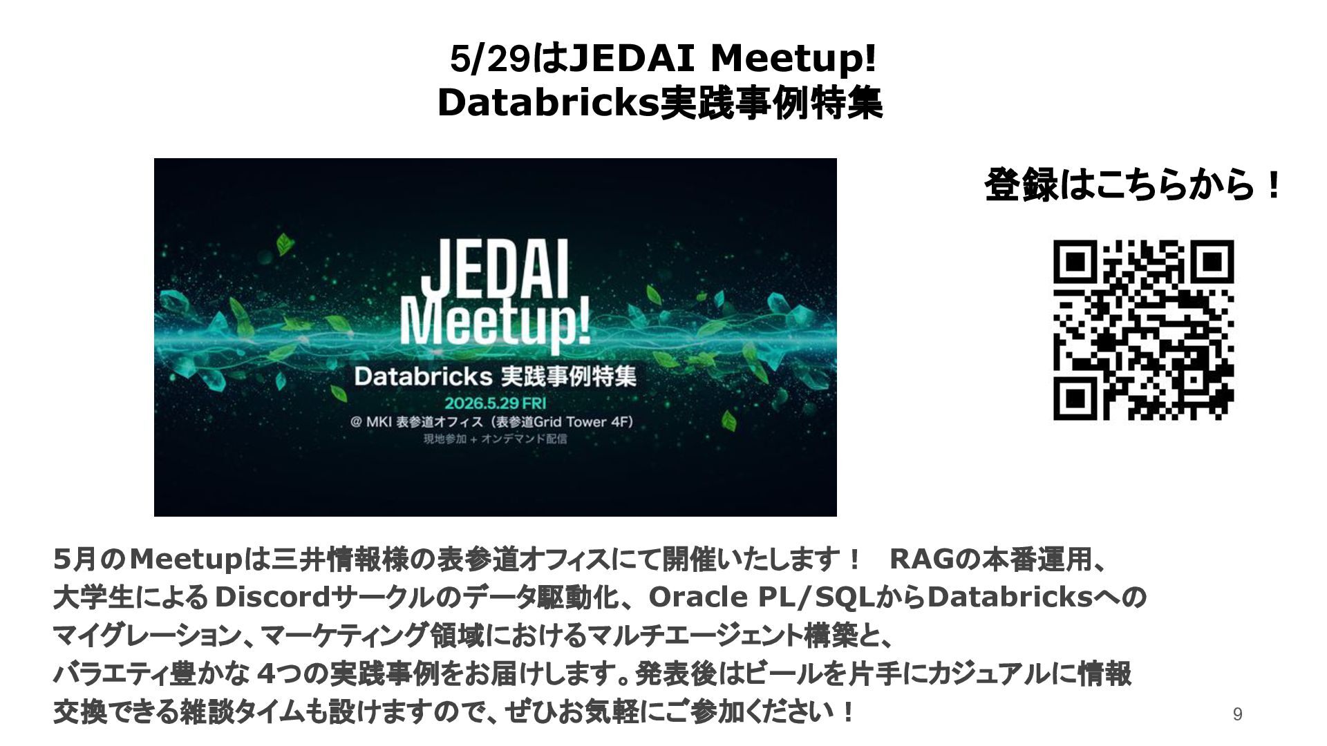 Databricks prior permission 参加者特典 賞金総額68,000米ドル Databricksのハンズオン体験 専門家によるトレーニング&ライブビルドセッション ネットワーキング&知名度向上 各言語トラック1位:4,000米ドルの賞金 各言語トラック2位:2,500米ドルの賞金 サンフランシスコで開催される Data + AI Summit 2027のパス+ホ テル 3,000米ドル分のDatabricksトレーニングクーポン スタートアップ支援として 700米ドル分のDatabricksクレジット(チー ムごと) Genie、Lakebase、Agent Bricks、Databricks Appsでインテリジェン トアプリを構築 AIを活用したアプリ開発の実践的な経験を習得 チームの立ち上げを支援する無料イネーブルメントセッション Databricks専門家による週2回のライブビルドセッション アイデア出し、アプリ構築、提出に関するガイダンス 限定Databricksドキュメント、チュートリアル、サンプルノートブックへの アクセス Databricks専門家およびAPJテックリーダーとの交流 優勝チームはDatabricksイベントでのプレゼン機会を獲得 受賞者はDatabricksのブログおよびソーシャルチャンネルで紹介 全チームに参加証明書を授与