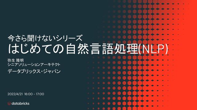 今さら聞けないシリーズ : はじめての自然言語処理 (NLP) | Databricks https://www.databricks.com/jp/resources/webinar/apj-ve-fundamental-series-nlp