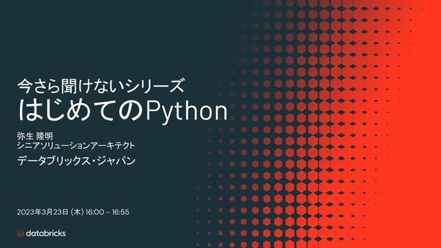 Databricks 今さら聞けないシリーズ : はじめてのPython https://pages.databricks.com/202303-APJ-VE-Fundamental-Series-Python.html
