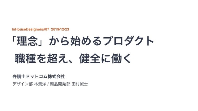 「理念」から始めるプロダクト〜職種を超え、健全に働く / InhouseDesigers_#07