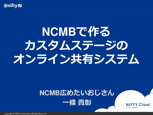 Copyright © NIFTY Corporation All Rights Reserved. NCMBで作る カスタムステージの オンライン共有システム