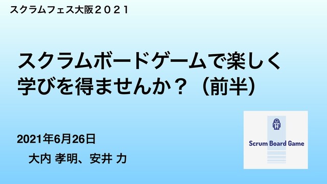 Scrum Fest Osaka 2021でスクラムを題材にしたオンラインボードゲームでスクラムあるあるを学ぶワークショップを行ったときの資料です。