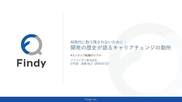 本イベントでは、30年以上のキャリアをもち、今なお現場と組織の両方を支えるファインディ CTO室・高橋より、エンジニアリングの歴史と個人のキャリアの交差点にある“気づき”をお話しいただきます。