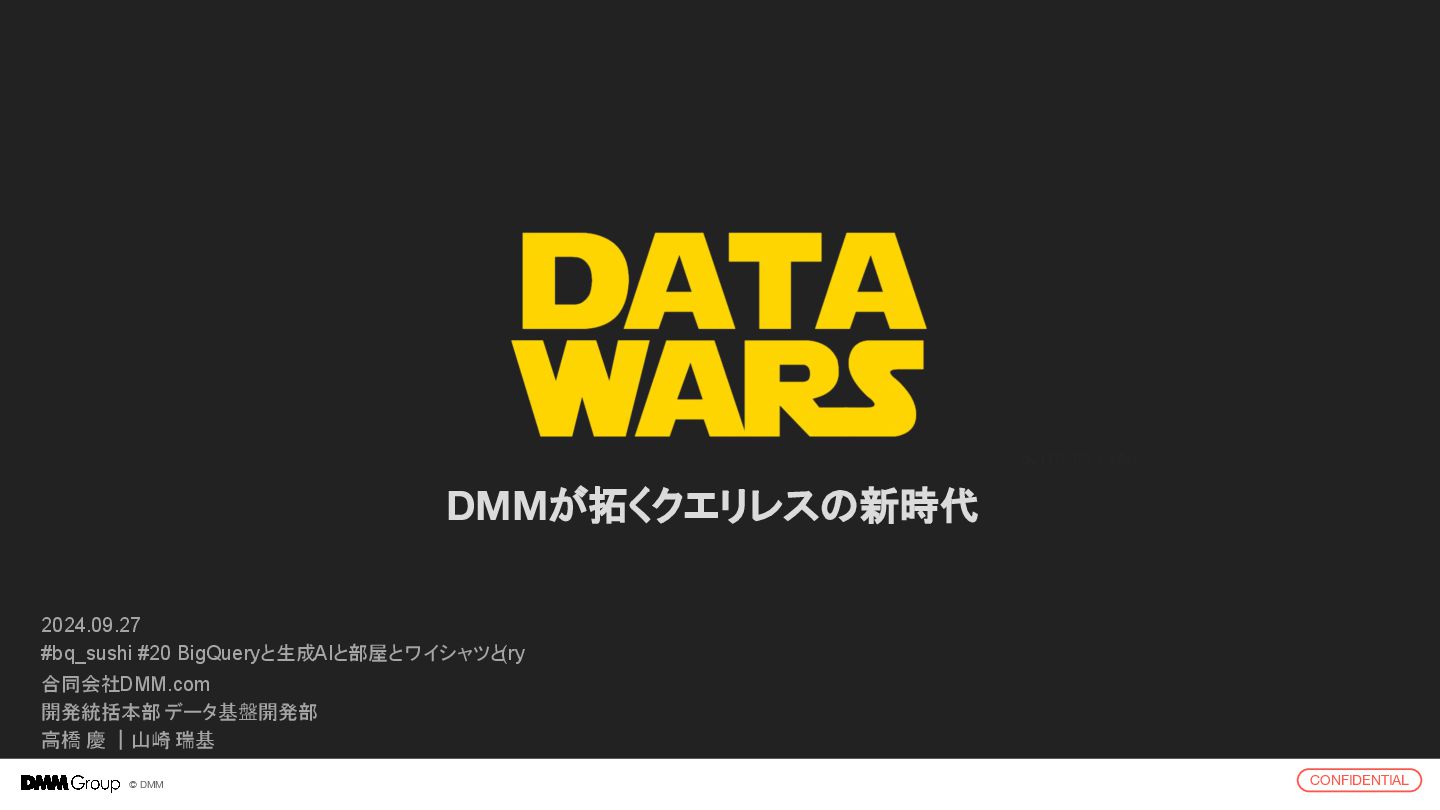 © DMM © DMM CONFIDENTIAL DMMが拓くクエリレスの新時代 2024.09.27 #bq_sushi #20 BigQueryと生成AIと部屋とワイシャツと