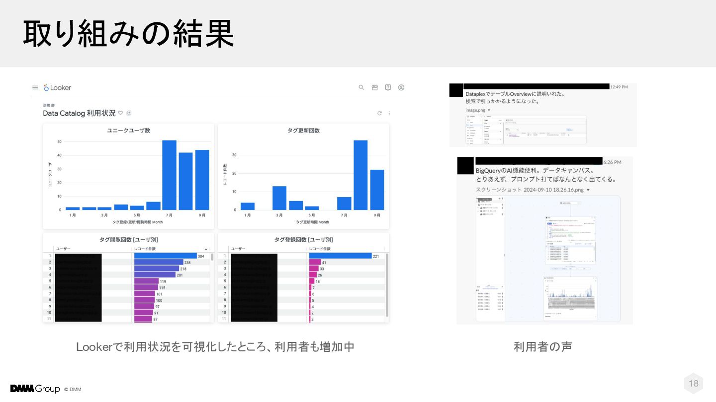 © DMM 取り組みの結果 18 Lookerで利用状況を可視化したところ、利用者も増加中 利用者の声