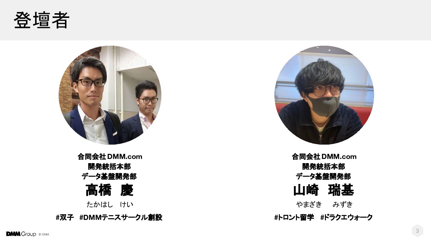 (ry 合同会社DMM.com 開発統括本部 データ基盤開発部 高橋 慶 |山崎 瑞基