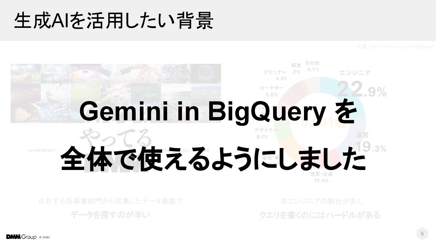 https://dmm-corp.com/figures/ Gemini in BigQuery を 全体で使えるようにしました