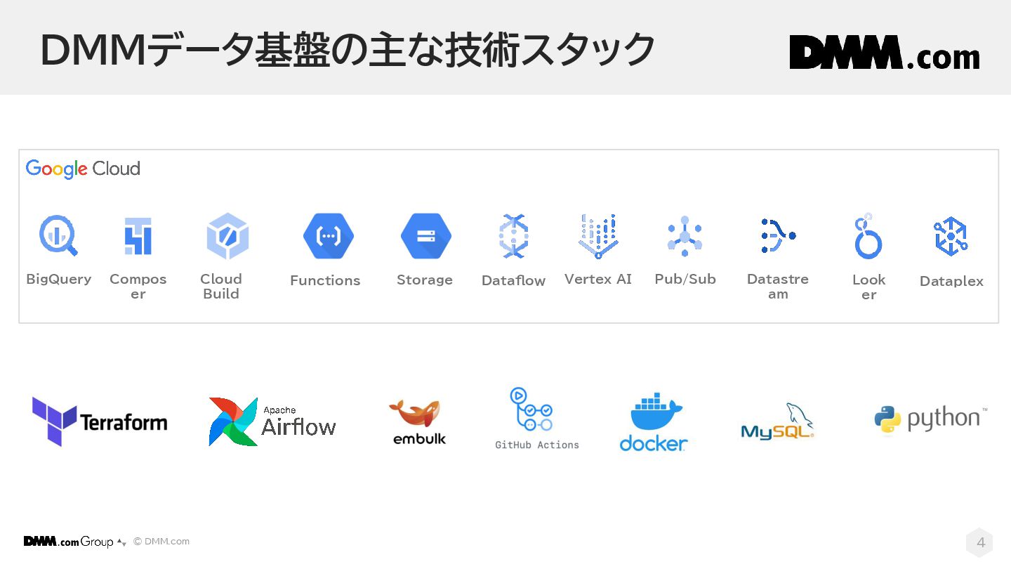 © DMM.com DMMデータ基盤の主な技術スタック 4 Vertex AI Dataflow Pub/Sub Compos er
