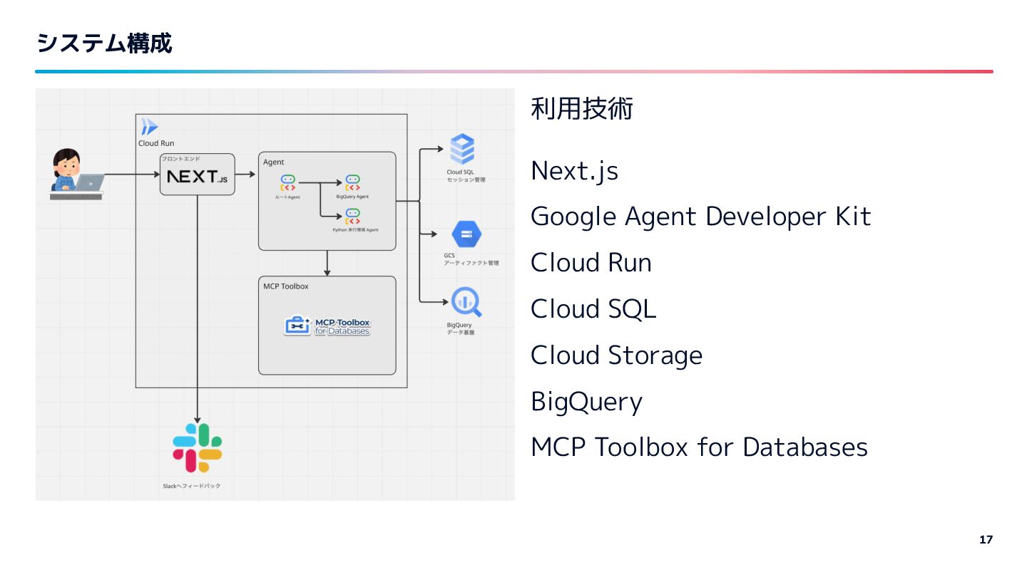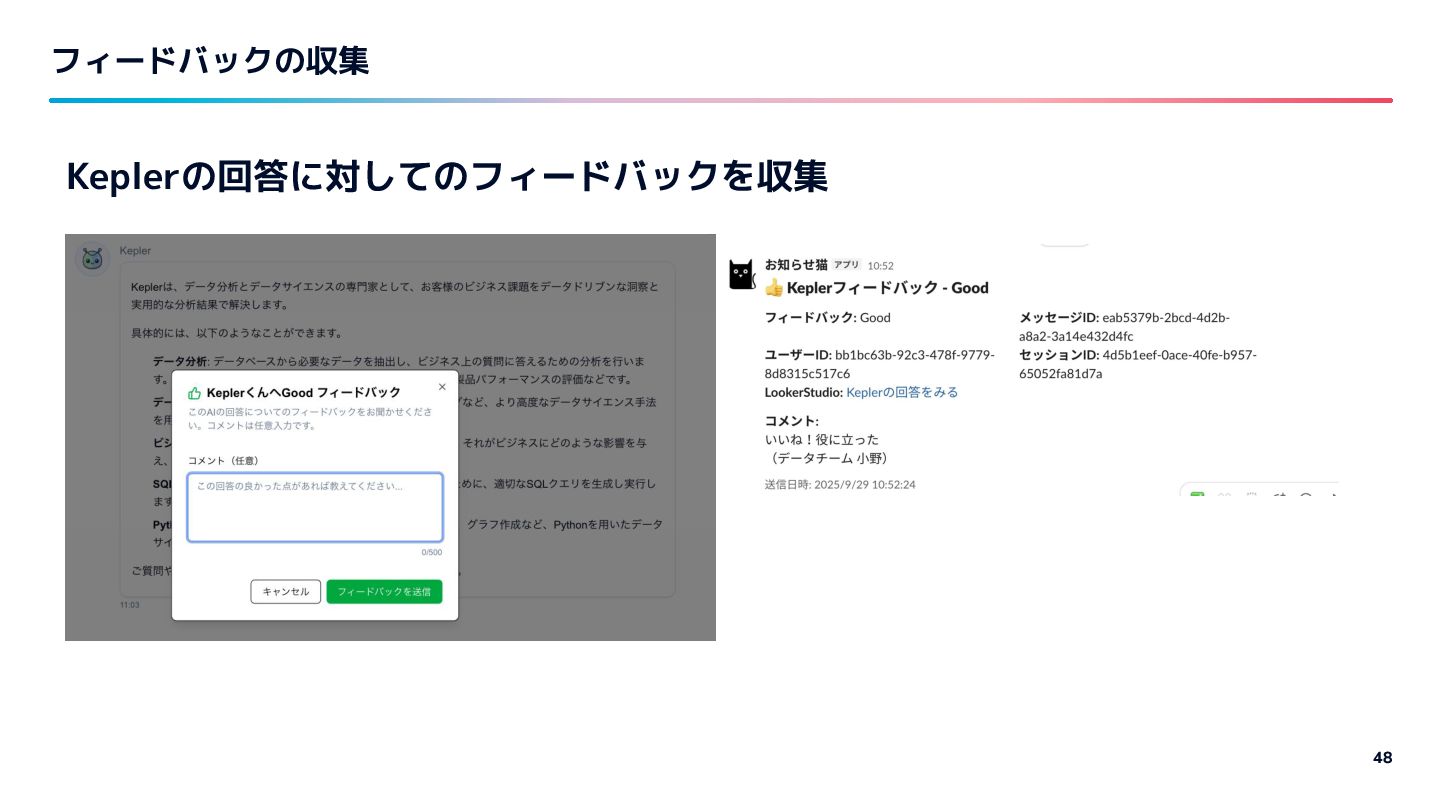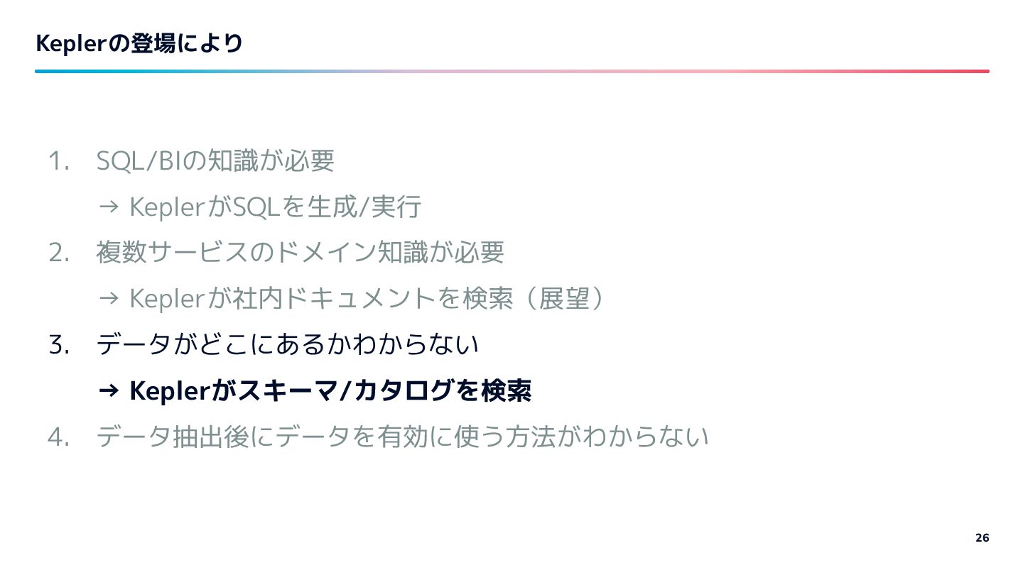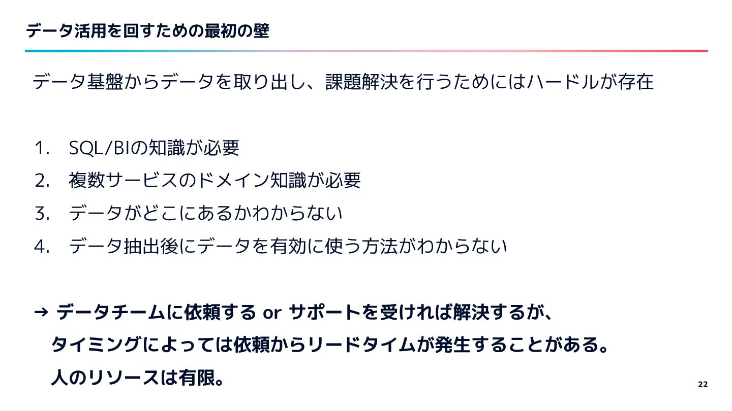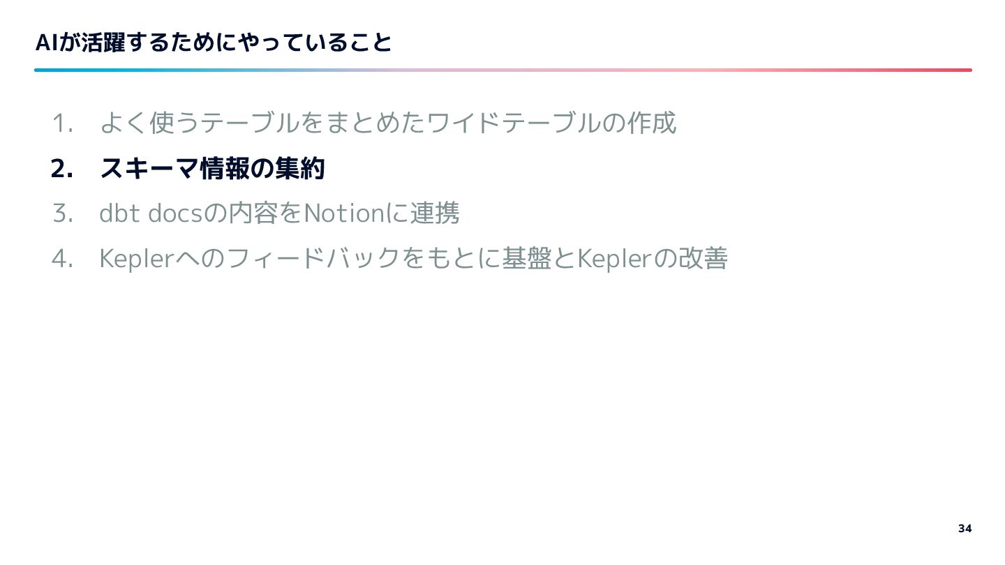 登壇前日に社内にリリースしたデータ分析Agentについて AIが活躍しやすいデータ基盤にするために取り組んでいることについてお話ししました。
