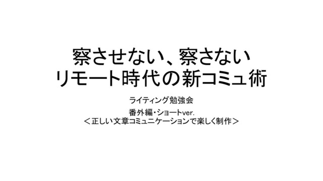 察させない、察さない リモート時代の新コミュ術 ライティング勉強会 番外編・ショートver. <正しい文章コミュニケーションで楽しく制作>