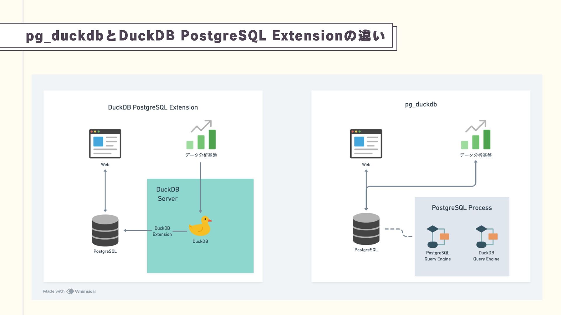 3. PostgreSQL + DuckDB統合のアプローチ(pg_duckdbとDuckDB PostgreSQL Extensionの違い)