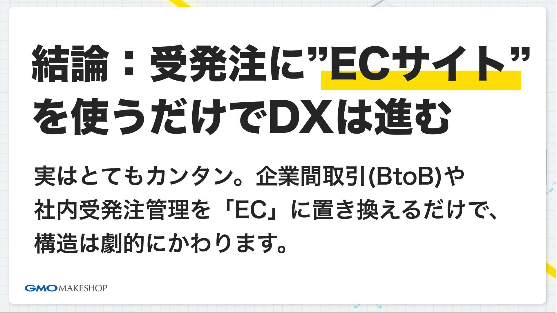 セミナータイトル:企業間の受発注管理にECサイトを使うとDX化がめちゃめちゃ進むよという話