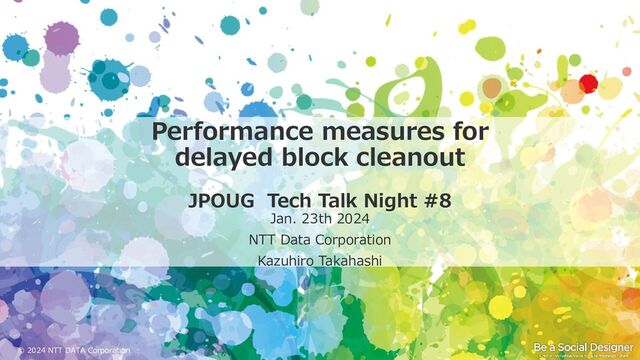 Delayed block cleanout is a process in the Oracle Database that updates blocks in an uncommitted state to committed when its referenced. If it occurs excessively in batch processing, it can cause unrepeatable SQL performance delays. In this session, we will discuss a performance issue caused by delayed block cleanout, the mechanism, and how to deal with them.